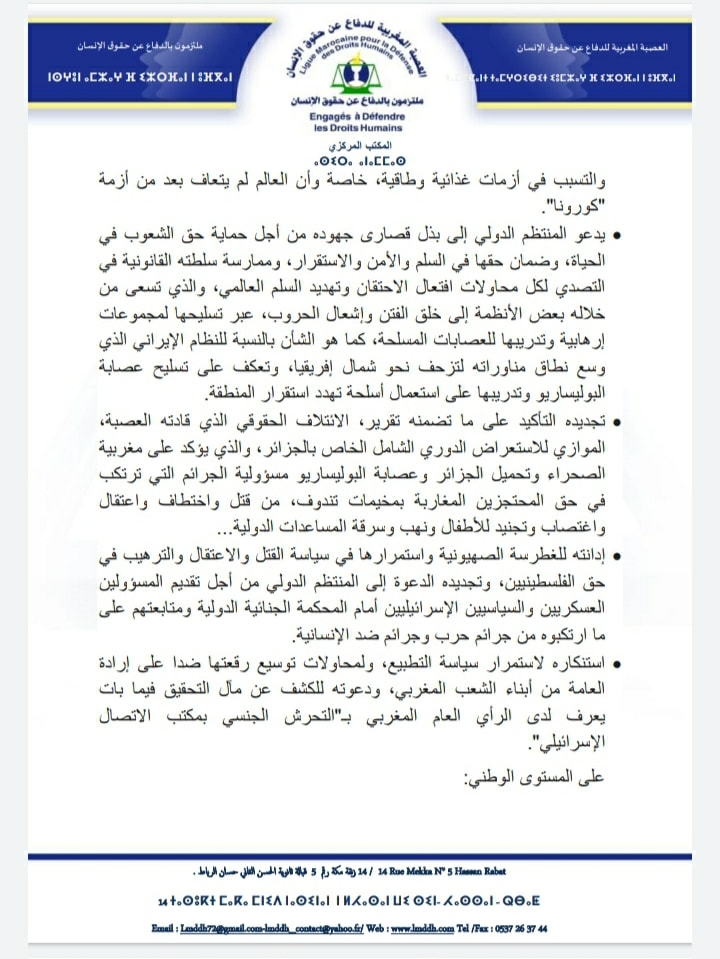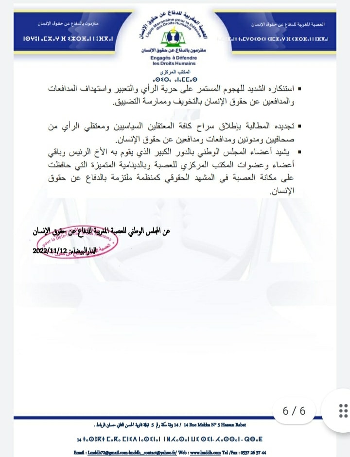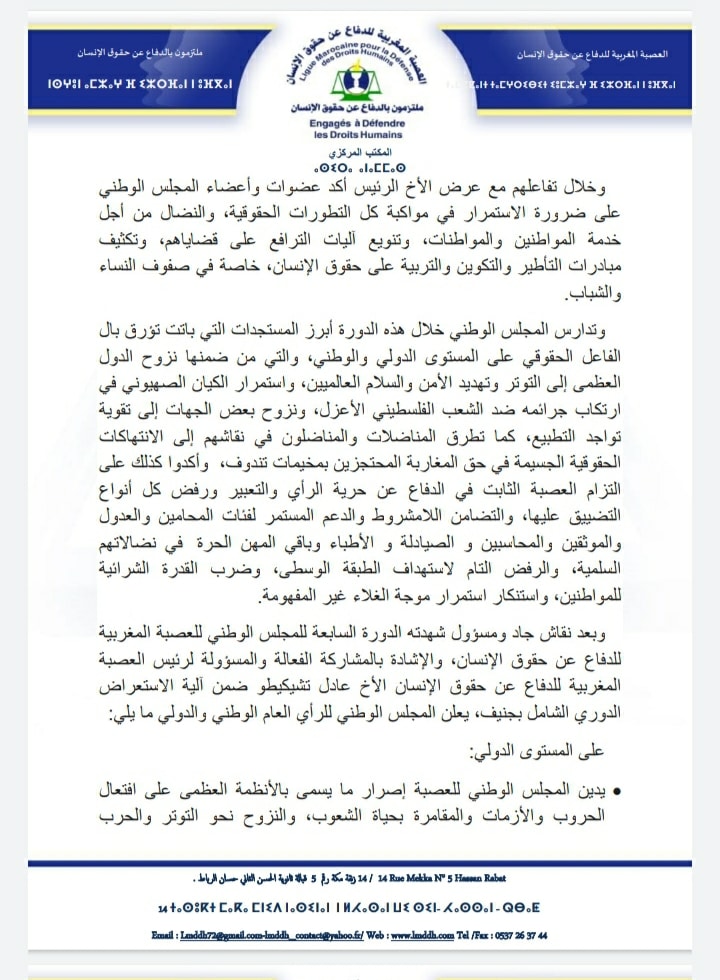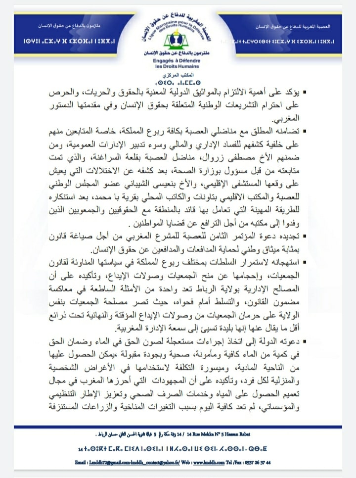 الرئيسية///بيانات و بلاغات///البيان الختامي للدورة السابعة للمجلس الوطني للعصبة المغربية للدفاع عن حقوق الإنسان بيانات و بلاغات البيان الختامي للدورة السابعة للمجلس الوطني للعصبة المغربية للدفاع عن حقوق الإنسان شاركها فيسبوك تويتر لينكدإن Tumblr بينتيريست سكايب ماسنجر ماسنجر واتساب تيلقرام مشاركة عبر البريد طباعة شاركها فيسبوك تويتر لينكدإن Tumblr بينتيريست سكايب ماسنجر ماسنجر واتساب تيلقرام مشاركة عبر البريد طباعة شاركها فيسبوك تويتر لينكدإن Tumblr سكايب ماسنجر ماسنجر ڤايبر مشاركة عبر البريد طباعة